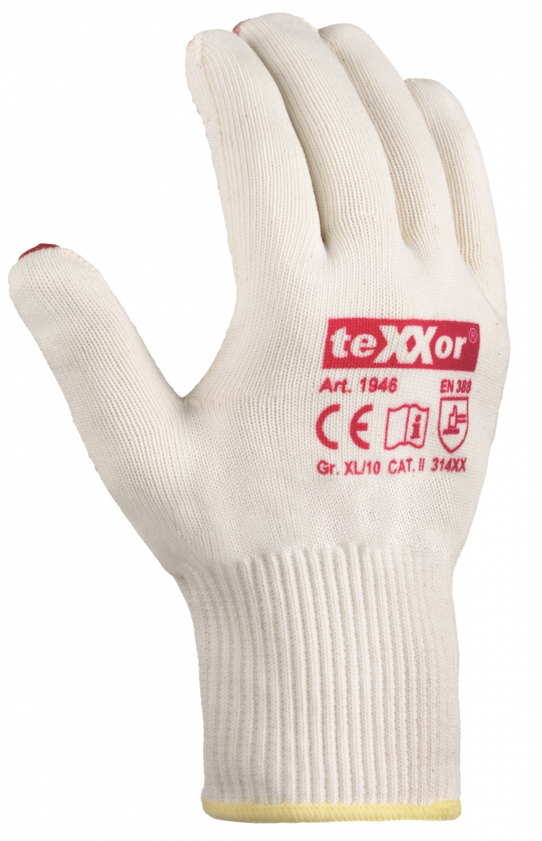 - mit einseitig aufgebrachten roten PVC-Noppen auf den Handinnenflächen