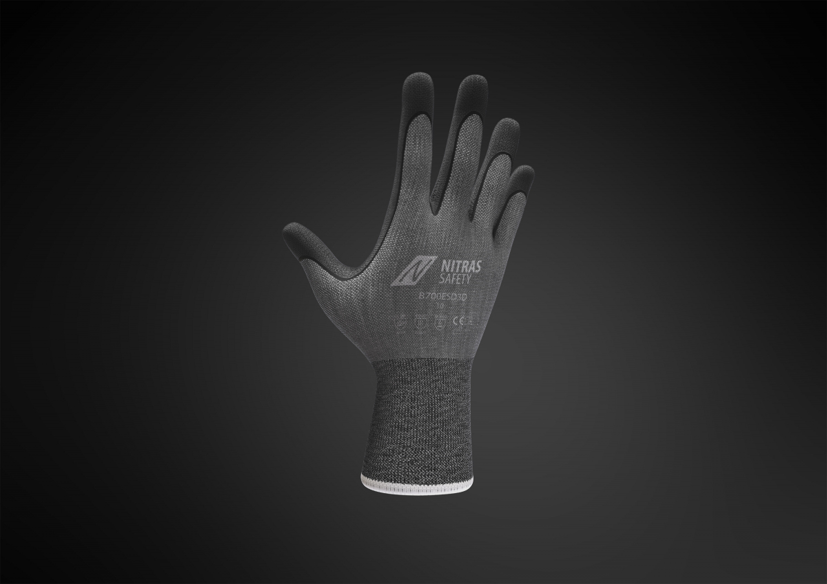 Diese Handschuhe zeichnen sich durch ihre antistatischen Eigenschaften aus, mit ableitfähigen Werten auf Innenhand, Handrücken und Stulpe, die sie für ESD-sensible Umgebungen geeignet machen. Die Nitrilschaum-Beschichtung sorgt für hohe Abriebfestigkeit bis zu 15.000 Scheuertouren und ist sehr rutschfest. Zudem sind sie touchscreenfähig, was den Einsatz mit digitalen Geräten erleichtert. Die Hautverträglichkeit ist dermatest®-geprüft, und sie tragen das OEKO-TEX STANDARD 100®-Siegel für schadstoffgeprüfte Textilien.