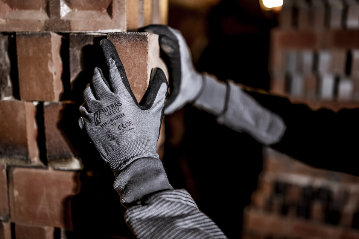 Das Material besteht aus 100% recyceltem Polyester in Grau, kombiniert mit einer schwarzen, gesandeten Nitril-Beschichtung auf der Innenhand und den Fingerkuppen. Diese teilweise Beschichtung sorgt für eine sehr rutschfeste Oberfläche und perfekten Halt, ohne die Beweglichkeit einzuschränken. Die Handschuhe fallen in die PSA-Risikokategorie II und erfüllen die Normen EN 388 mit den Werten 4131X sowie EN ISO 21420 mit einer Fingerbeweglichkeit von Stufe 5. Dadurch gewährleisten sie Schutz vor mechanischen Risiken wie Abrieb, Schnitten, Rissen und Durchstichen.