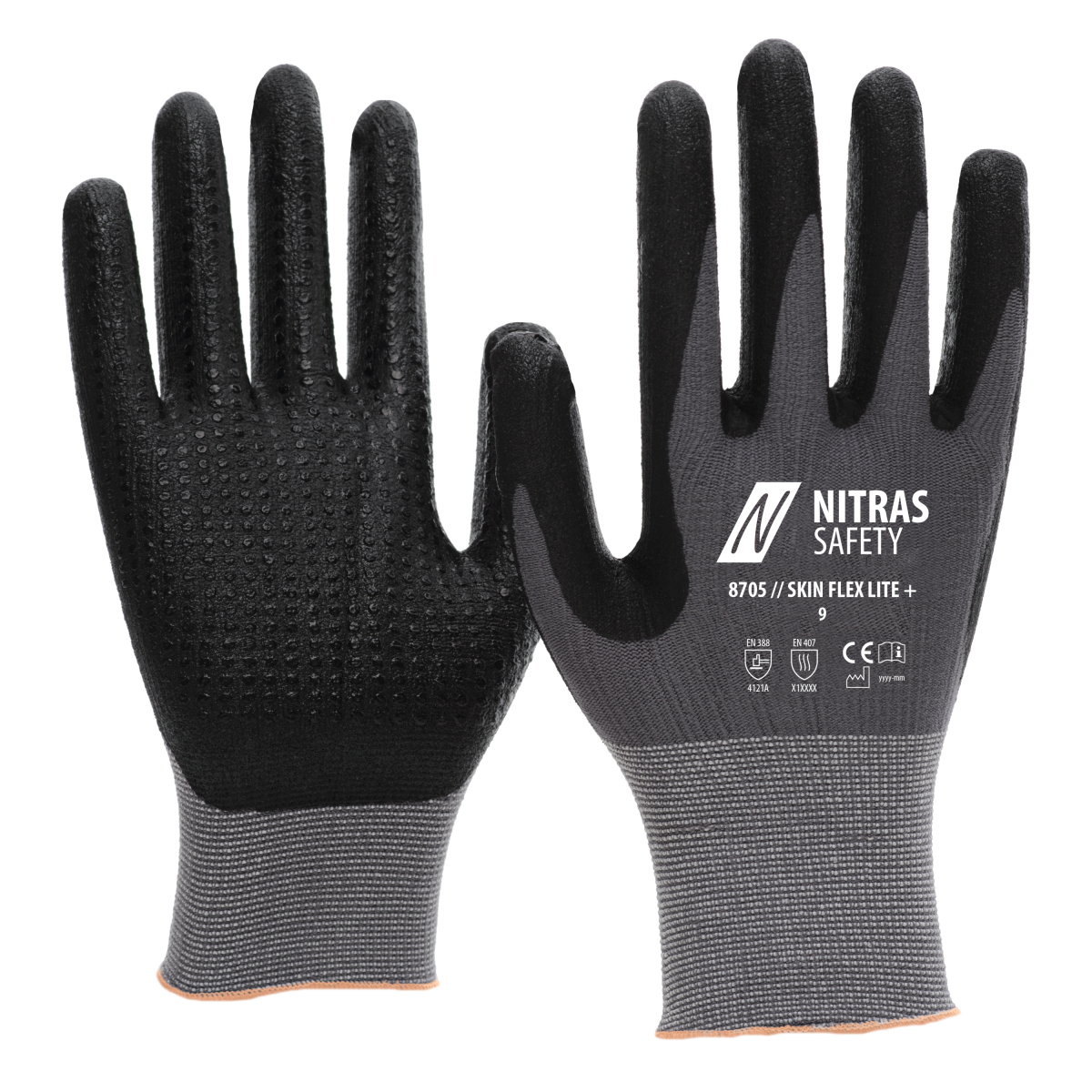 Die NITRAS SKIN FLEX LITE+ Montagehandschuhe bieten zuverlässigen Schutz für anspruchsvolle Arbeiten in Branchen wie Handwerk, Bau, Fahrzeugbau, Kommissionierung, Versand sowie Garten- und Landschaftsbau. Diese Handschuhe sind ideal für Montageaufgaben, bei denen hohe mechanische Beständigkeit und Fingerfertigkeit gefragt sind. Sie schützen vor mechanischen Risiken wie Abrieb, Schnitten, Rissen und Stichen, gemäß EN 388 mit den Werten 4121A.