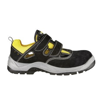 AusstattungObermaterial: Veloursleder, Textileinsätze, farbige Schaftapplikationen, Klettverschluss, gepolsterte Lasche und Schaftrand, Futter: atmungsaktives Textil-Funktionsfutter, Farbe gelb, Sohle: PU/PU-Sohle, Kappe: Stahlkappe, Fußbett: ganzflächige Einlegesohle, Rutschhemmung: SRC
