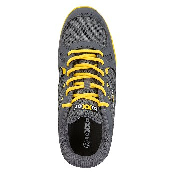 Obermaterial: Microfaser, Textileinsätze, gepolsterte Faltlasche, Farbe: grau/gelb, Futter: atmungsaktives Textil-Funktionsfutter, Farbe: grau.