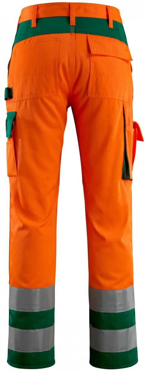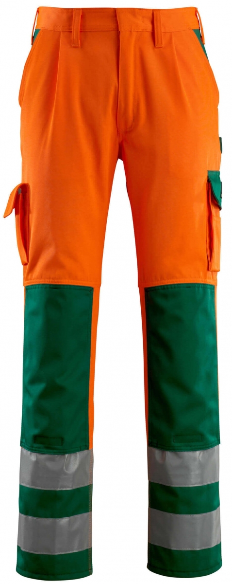Diese hochwertige Arbeitshose bietet optimalen Schutz und Komfort für anspruchsvolle Einsätze. Die fluoreszierenden Materialien und Reflektoren sorgen für ausgezeichnete Sichtbarkeit bei schlechten Lichtverhältnissen. Dank der Teflon®-Behandlung weist die Hose Schmutz zuverlässig ab und behält ihre Funktionalität. Die robusten dreifachen Kappnähte an Beinen und Schritt verlängern die Lebensdauer erheblich.