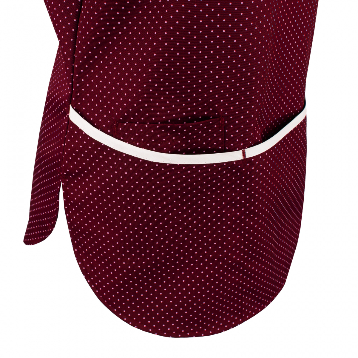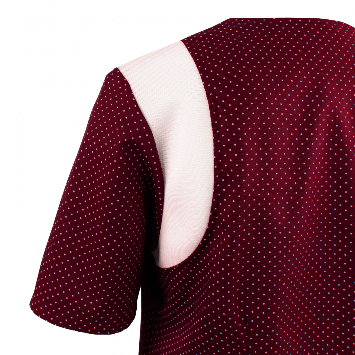 - Halsauschnitt und Tascheneingriff farbig eingefasst