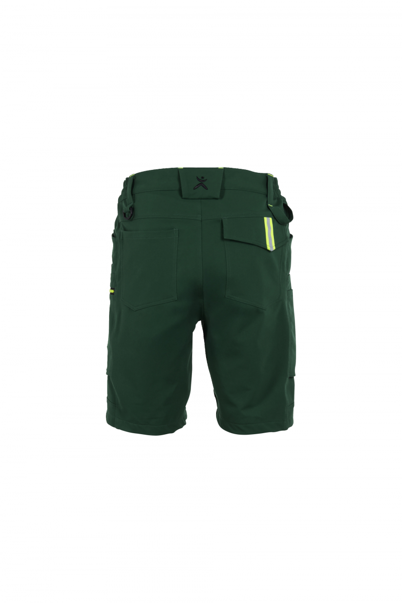 Ein besonderes Highlight ist die Verwendung von recyceltem Polyester, das für Langlebigkeit und Strapazierfähigkeit sorgt. Die Shorts verfügen über mehrere praktische Taschen, darunter Cargo-Taschen für Werkzeuge und Utensilien, was den Alltag erleichtert. Reflexelemente erhöhen die Sichtbarkeit in schlechten Lichtverhältnissen und tragen zur Sicherheit bei. Die atmungsaktive Gewebestruktur verhindert übermäßiges Schwitzen und sorgt für ein angenehmes Tragegefühl den ganzen Tag über.