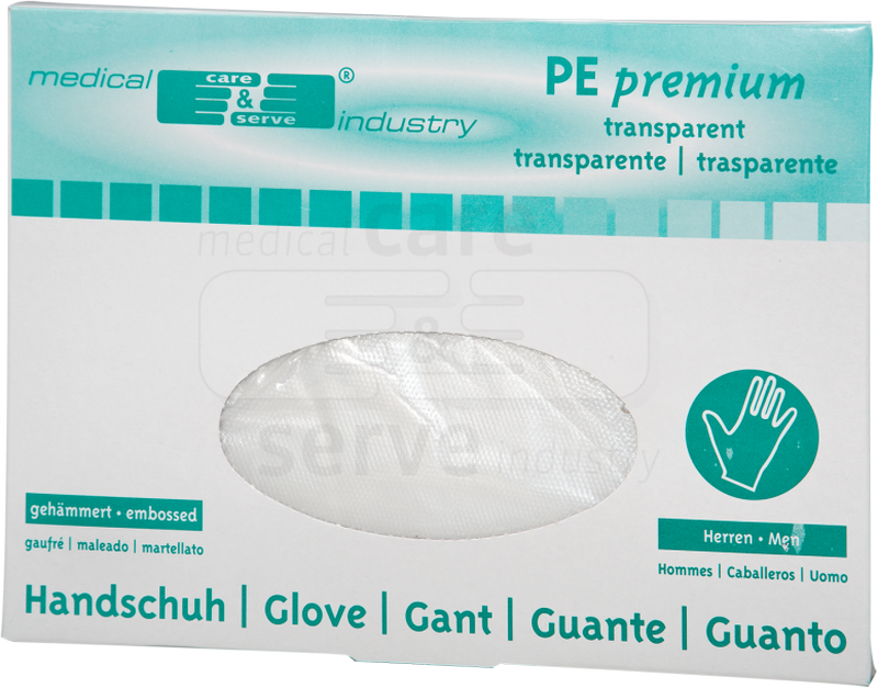 WIROS-Hand-Schutz, Einweg-PE Untersuchungs-Einmal-Handschuhe, gehämmert, Spenderbox Öffnung unten, 0,018 mm, Pkg á 100 Paar, VE = 100 Pkg, transparent