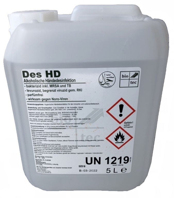 - Bio Tec Des HD ist ein angenehm zu handhabendes, hochwirksames, alkoholisches Händedesinfektionsmittel