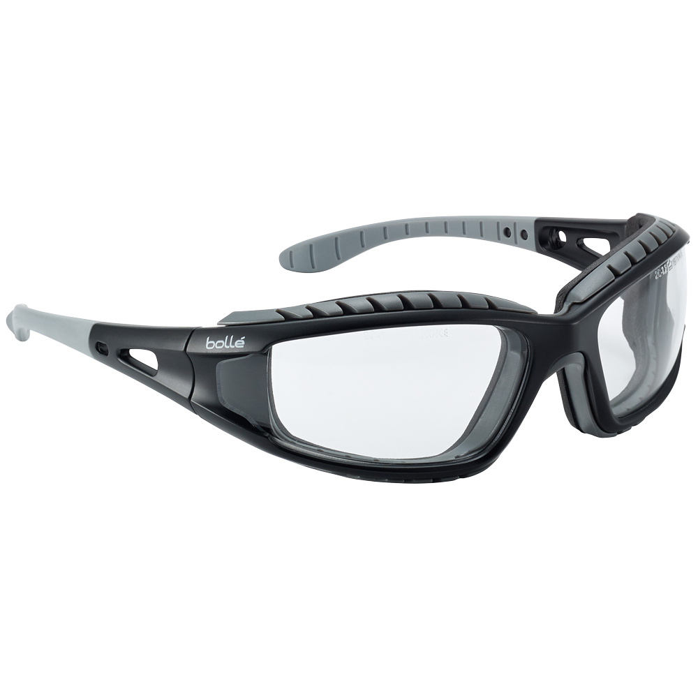 Die *TRACKER II* Bügelbrille von BOLLÉ ist eine hochwertige Schutzbrille, die speziell für anspruchsvolle Arbeitsumgebungen entwickelt wurde. Sie bietet zuverlässigen Schutz vor hochgeschwindigkeits Teilchen und eignet sich ideal für Branchen wie Bau, Industrie oder Handwerk, wo Augenverletzungen ein hohes Risiko darstellen. Die klare Sichtscheibe aus Polycarbonat gewährleistet eine optimale Sicht und ist mit der PLATINUM-Beschichtung ausgestattet, die sowohl kratzfest als auch beschlagfrei ist. Dadurch bleibt die Brille auch bei intensiver Nutzung klar und funktionsfähig.